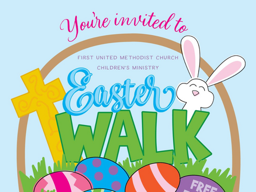 The FUMC Children's Ministry invites children (birth to 5th grade) to FUMC's annual Easter Walk on Saturday, March 28 from 10am-12pm. Dan and Robin Reed are hosting the event, and all FUMC families and their guests are welcome at this free event! Make sure to bring an Easter basket, a blanket, and a friend!
